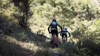 Dso ciclistas recorren uno de los senderemos entre pinos de la 'Challenge Algairén BTT' - CHALLENGE ALGAIRÉN BTT