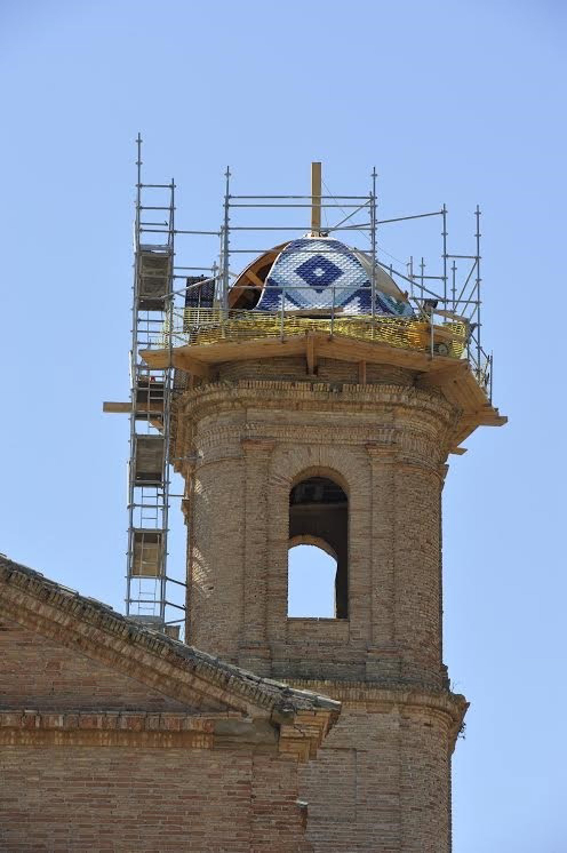 Los trabajos que finalizarán en el mes de junio están centrados en frenar las filtraciones de agua mediante el retejado y consolidación de las techumbres de la nave principal y las capillas, además de los dos cimborrios, que se están llevando a cabo de forma paralela a la intervención de urgencia en el chapitel de la torre.