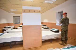 Zona de dormitorio de una de las camaretas compartidas por los estudiantes de la Academia General Militar de Zaragoza. - Ramón Comet - Europa Press