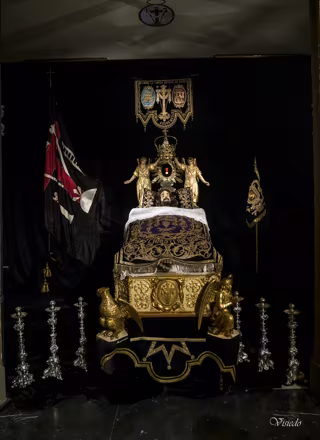El Cristo de la Cama es el principal paso de esta procesión que está expuesto al público en la Iglesia de Santa Isabel de Portugal, en la plaza del Justicia, desde las 09.00 hasta las 14.00 horas, junto a otros pasos que también participan en el Santo Entierro.