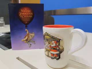 La publicación de la programación lleva de portada una ilustración con un libro que vuela colgado de un globo con el lema "En Navidad Zaragoza es Cultura".
