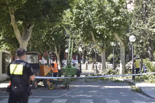 Asimismo, se ha tenido que talar el cedro del Himalaya de la calle Ramón y Cajal, porque "la inclinación era peligrosísima" para el edificio de viviendas anexo, ha comentado Orduna, al tiempo que ha señalado que la tormenta duró cerca de tres cuartos de hora provocando "cuantiosos daños materiales en toda la ciudad".