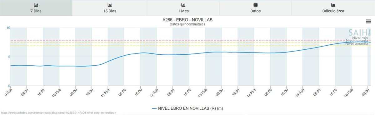 Gráfica del nivel del río Ebro a su paso por Novillas. - SAIH EBRO