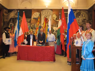 El diputado delegado de Cultura de la Diputación Provincial de Zaragoza (DPZ), José Manuel Larqué, ha presidido este jueves la recepción oficial de la institución a los grupos participantes en este encuentro, un evento que convierte la provincia en "un referente mundial del folklore".