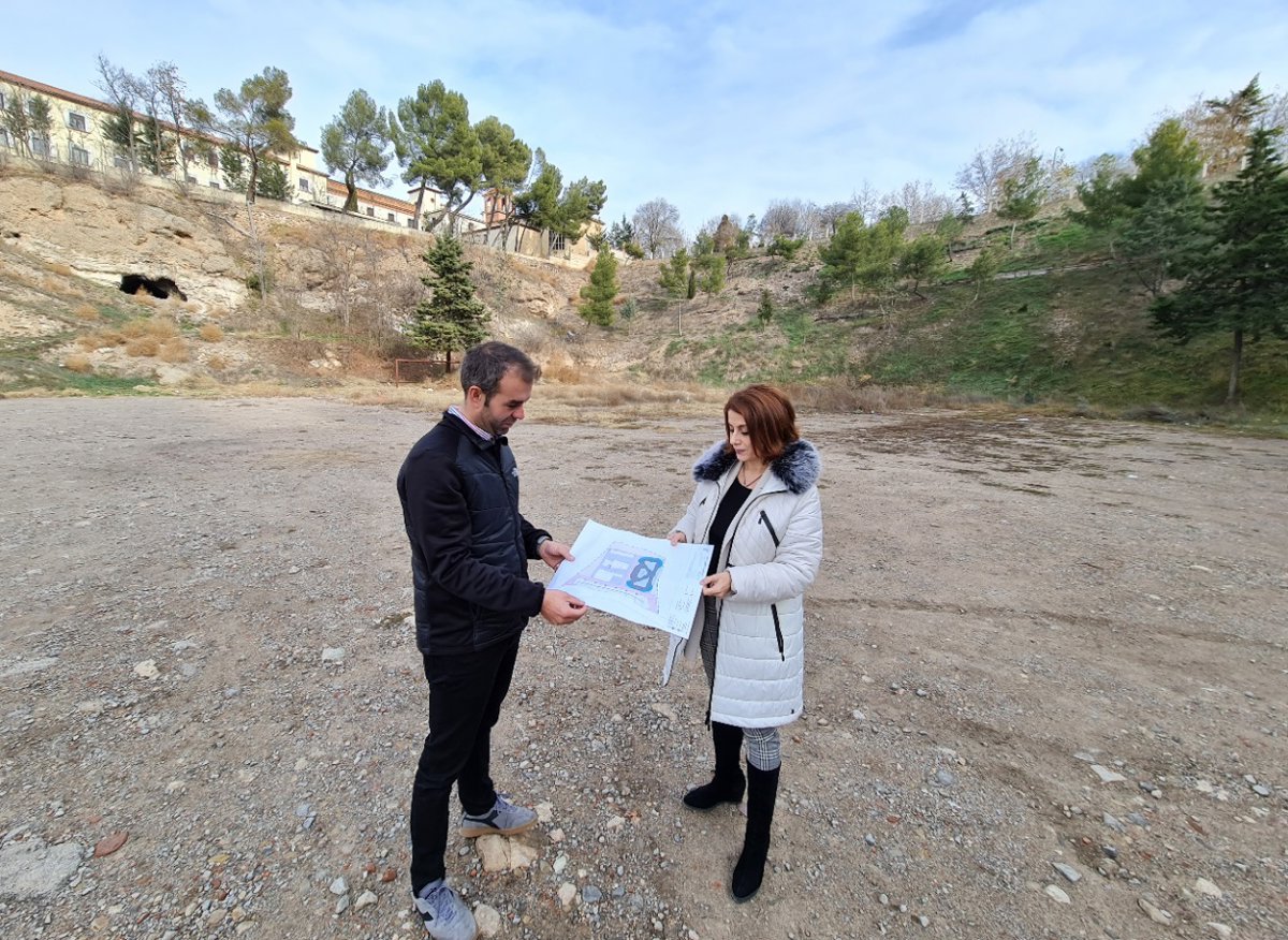 La alcaldesa de Teruel, Emma Buj, y el concejal de Deportes, Carlos Aranda, han visitado el lugar donde se construirá esa nueva instalación. que atiende a la demanda de los jóvenes de la ciudad.