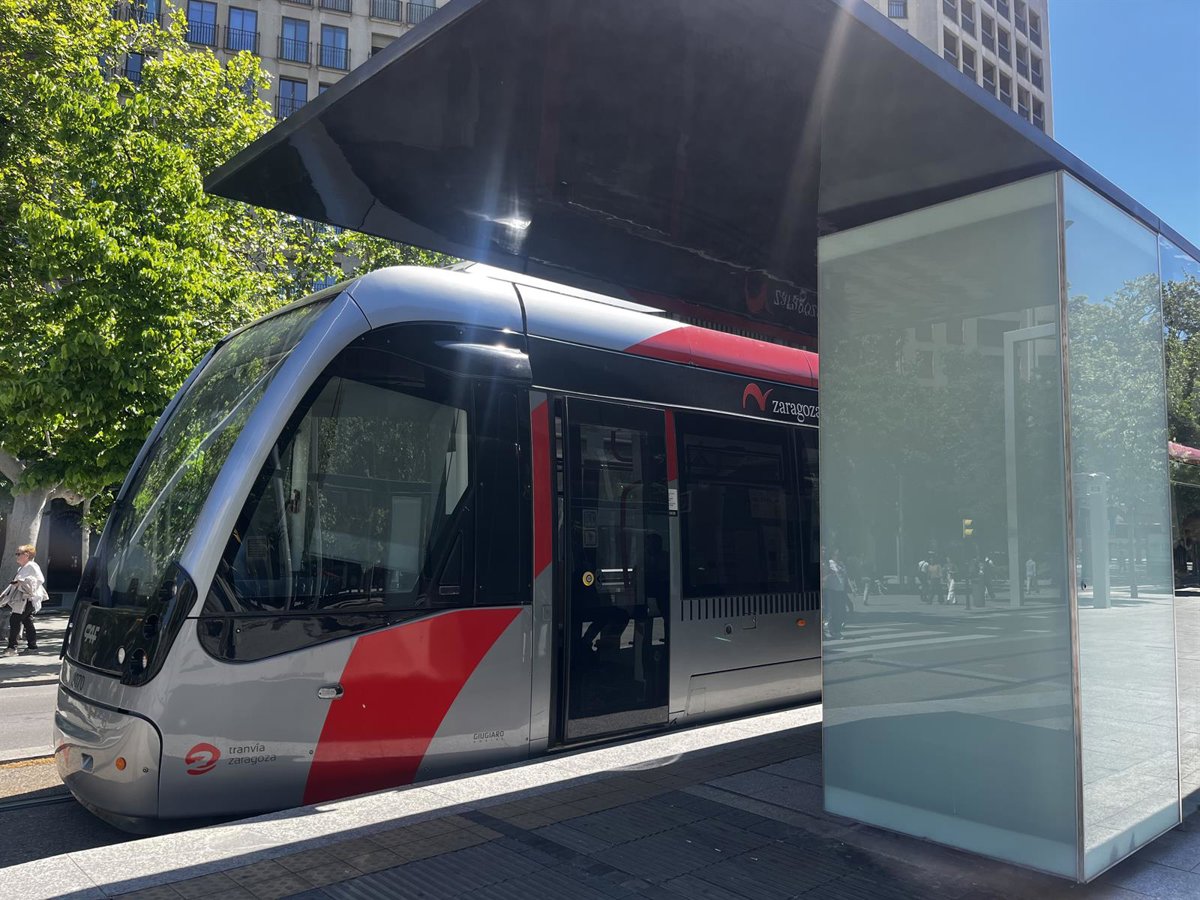 Archivo - Tranvía estacionado en una parada en Zaragoza. - EUROPA PRESS - Archivo