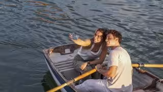 Una pareja se fotografía en el lago de Puerto Venecia. - PUERTO VENECIA