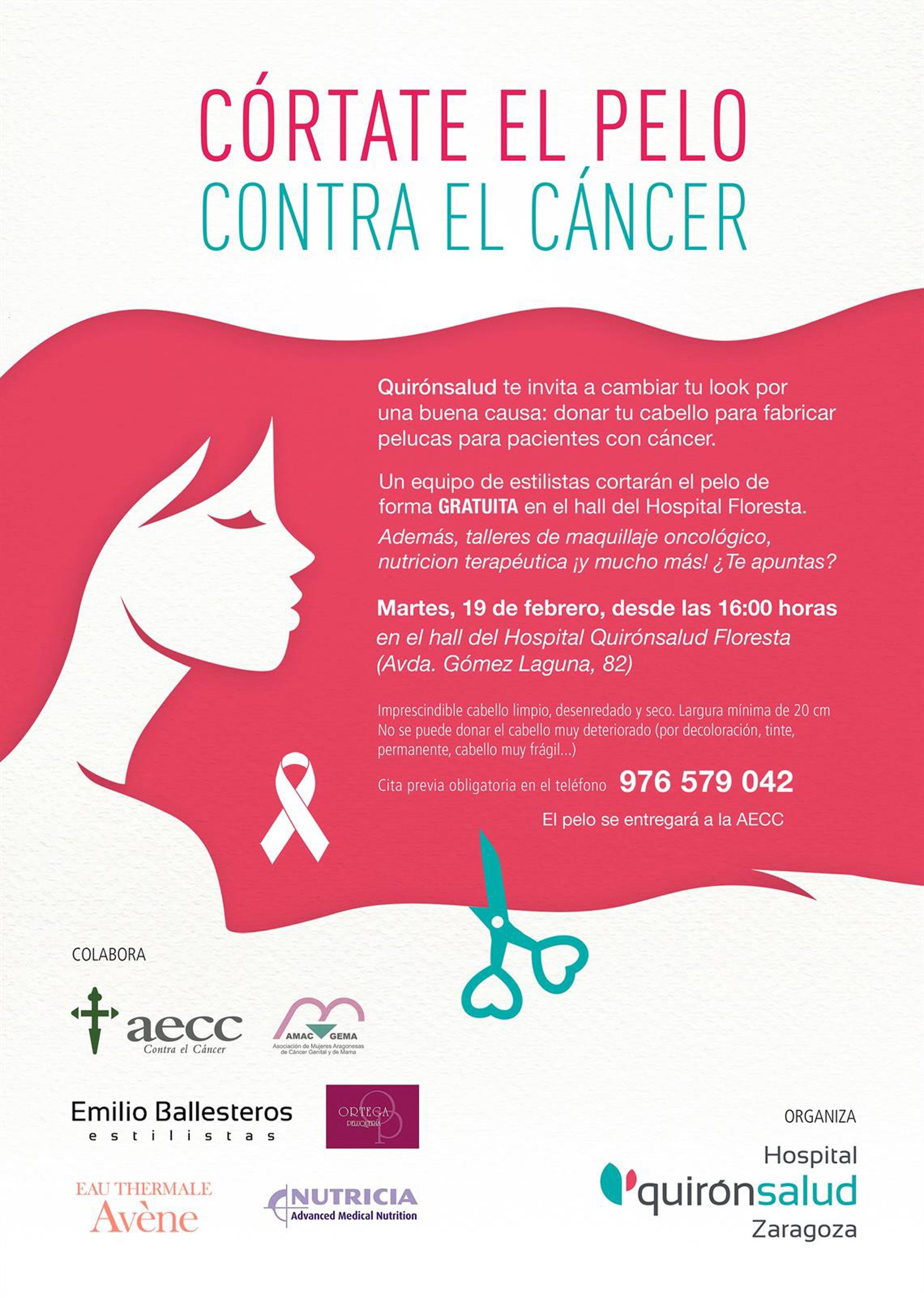 El hall del Hospital de Día Quirónsalud Zaragoza, en la Floresta, acogerá el próximo martes 19 de febrero la segunda edición de la iniciativa 'Córtate el pelo', cuyo objetivo es recoger cabello natural para fabricar pelucas para pacientes oncológicos y visibilizar así la lucha contra el cáncer, cuyo Día Mundial se celebra el 4 de febrero.