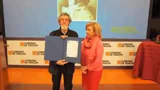 Navarro ha recibido el galardón de manos de la consejera de Educación, Universidad, Cultura y Deporte del Gobierno autonómico, Dolores Serrat, en un acto que ha tenido lugar en el Museo de Zaragoza, y al que también han asistido el director general de Cultura, Humberto Vadillo, y la vicepresidenta primera de las Cortes aragonesas, Rosa Plantagenet.