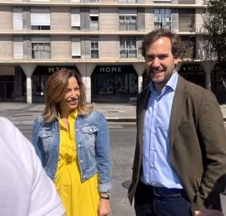 Archivo - El eurodiputado del PP en el Parlamento Europeo, Borja Giménez Larraz, junto a la alcaldesa de Zaragoza, Natalia Chueca, en la capital aragonesa. - EUROPA PRESS - Archivo