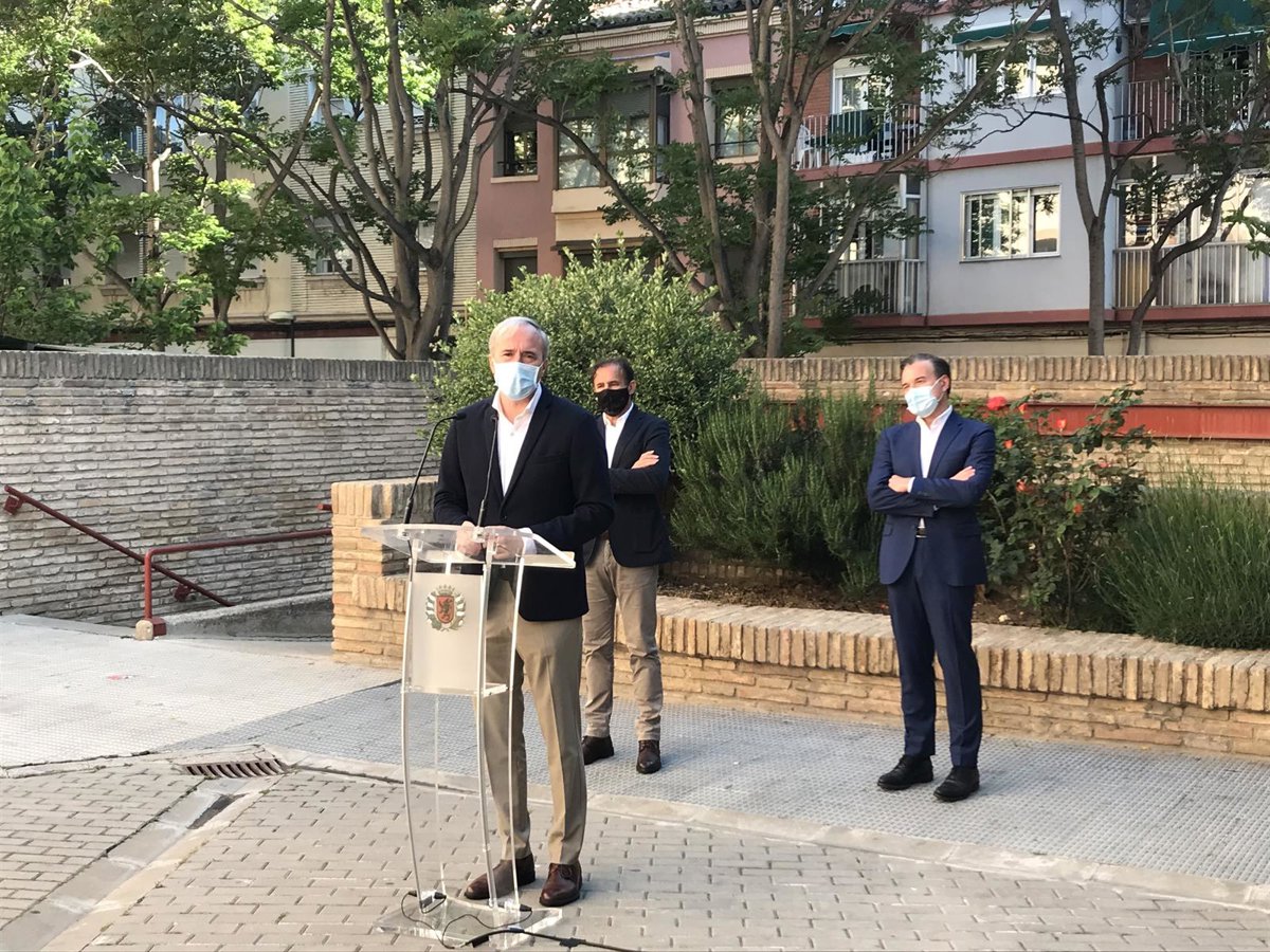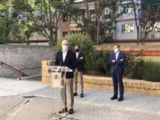 El alcalde de Zaragoza, Jorge Azcón; el consejero municipal de Acción Social y Familia, Ángel Lorén, y el consejero municipal de Urbanismo y Equipamientos, Víctor Serrano, han informado de las principales características del proyecto de reforma en las propias instalaciones de este equipamiento.
