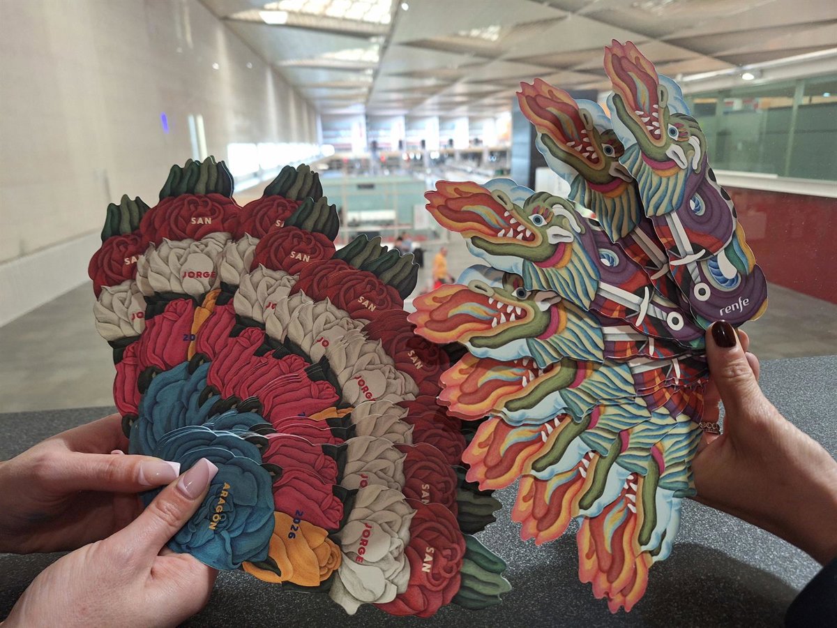 Con este obsequio, la compañía se suma a los actos para conmemorar una jornada de especial valor para los aragoneses. El dragón y las flores son los protagonistas de estos puntos de lectura diseñados para la ocasión por García Huerta, con los que Renfe quiere acompañar la celebración de San Jorge.