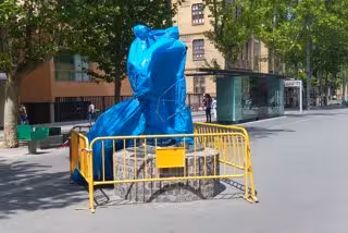 La obra 'Complicidad', compuesta por tres figuras, del escultor Alberto Gómez Ascaso, comenzará desmontarse este martes, 14 de junio, de su ubicación de la Gran Vía, para trasladarla posteriormente a un taller, donde se procederá a su entera reparación.