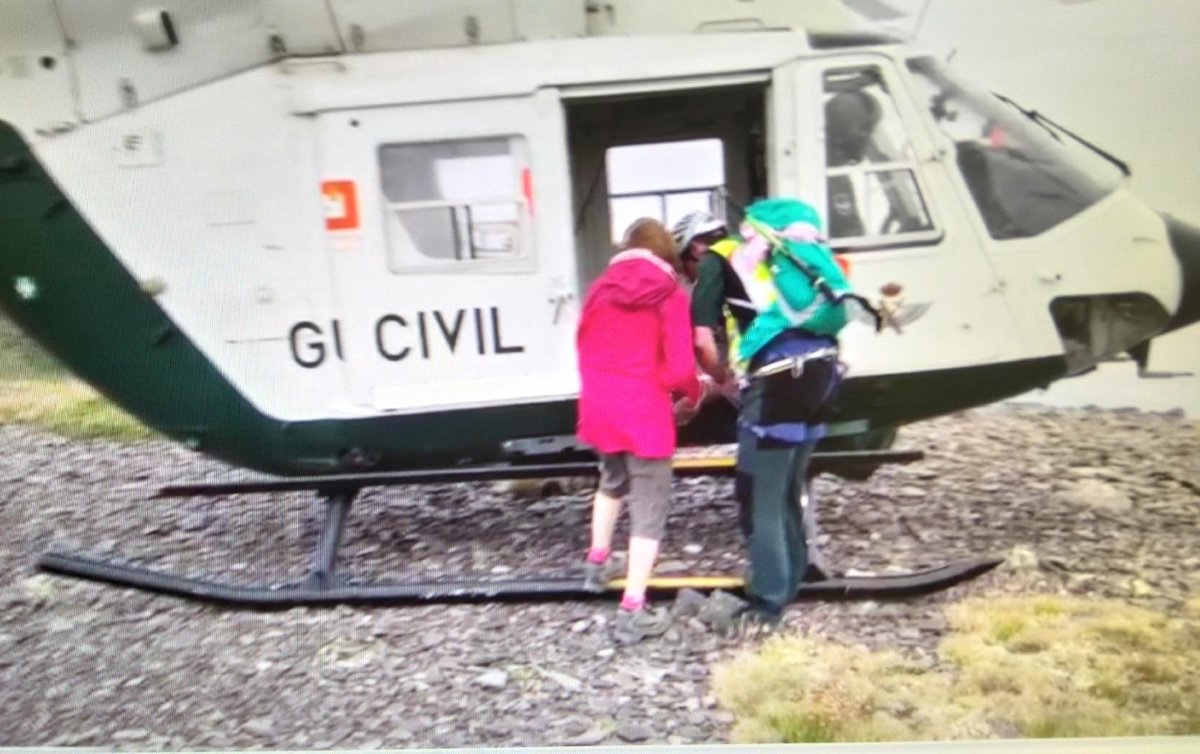 La senderista fue trasladada a pie, ayudada por los especialistas de la Guardia Civil hasta una zona donde el helicóptero pudo acceder, en el Cerro de San Juan, para evacuar a esta persona.