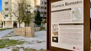La actuación se completa con la instalación de un panel informativo que permite contextualizar históricamente el yacimiento y explicar sus principales características. Este recurso sitúa los restos en el marco de la Osca romana, cuyo periodo de mayor esplendor se desarrolló entre finales del siglo I a. C. y el siglo II d.C., cuando la ciudad, convertida en municipio romano, alcanzó un notable desarrollo urbano, y recuerda que, aunque el núcleo principal se localizaba en el actual casco antiguo, también se han documentado construcciones relevantes en espacios situados fuera de ese ámbito central.
