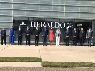 Sus Majestades los Reyes de España, Don Felipe VI y Doña Letizia, han recibido este miércoles, 16 de septiembre de 2020, el Premio Extraordinario Heraldo 125 aniversario en un evento que han presidido en la rotativa del diario Heraldo de Aragón, el decano de la prensa aragonesa, en Villanueva de Gállego (Zaragoza). Don Felipe ha puesto de relieve el compromiso de este periódico con la libertad y los ciudadanos.