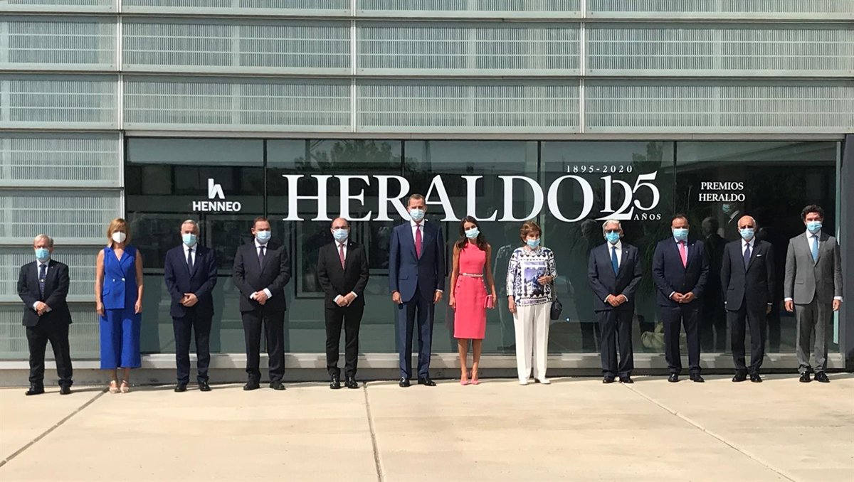 Sus Majestades los Reyes de España, Don Felipe VI y Doña Letizia, han recibido este miércoles, 16 de septiembre de 2020, el Premio Extraordinario Heraldo 125 aniversario, en un evento celebrado en la rotativa de Heraldo de Aragón, en Villanueva de Gállego (Zaragoza), donde el Rey ha destacado la "integridad profesional" y la "vocación de informar" de este diario y las cinco generaciones que lo han editado, así como "el amor a su tierra y España".