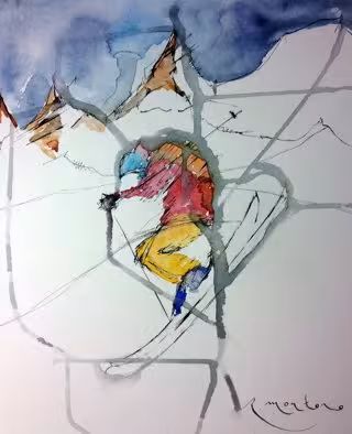 La mayoría de ellas recrean imágenes de escalada y esquí alpino experimentadas previamente por el autor y por los grupos de montañeros a los que acompaña. Se confiesa un enamorado del Pirineo y de los Alpes, lugares mágicos que le inspiran e intenta recrear en sus obras.