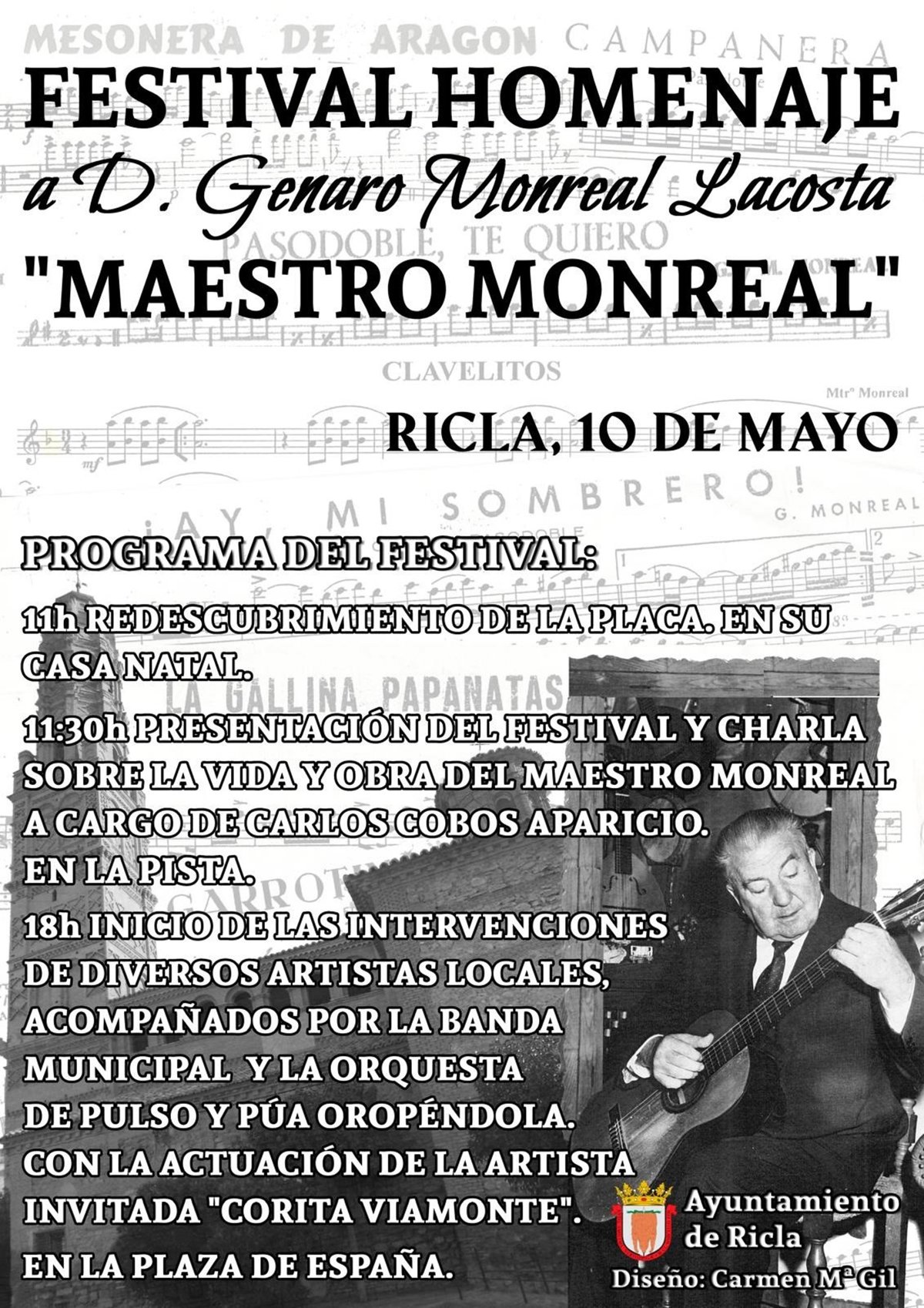 Cartel del Festival Homenaje al Maestro Monreal, en Ricla (Zaragoza). - AYUNTAMIENTO DE RICLA