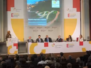 Rudi ha clausurado el acto de presentación, en la Cámara de Comercio e Industria de Zaragoza, del documento del Consejo Empresarial para la Competitividad (CEC), 'España emprende y exporta', elaborado para destacar las claves de la recuperación económica y las fortalezas de la economía española, desgranado este lunes por el presidente del Consejo y de Telefónica, César Alierta.