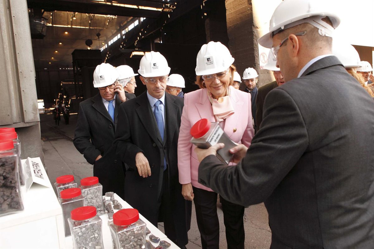 Acompañada por el presidente de la compañía, Juan Miguel Villar Mir, y el consejero de Industria e Innovación del Gobierno aragonés, Arturo Aliaga, Rudi ha visitado las instalaciones que la fábrica tiene en Monzón (Huesca).