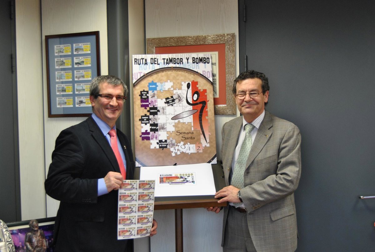 El delegado territorial de la ONCE en Aragón, Ignacio Escanero, y el presidente de la Ruta del Tambor y del Bombo, Segundo Bordonaba, quieren difundir, a través del cupón, quieren difundir la Semana Santa 2012 y dar a conocer la Ruta del Tambor y del Bombo, ilustrando los cupones con el logotipo de la ruta, que incluye el listado de las localidades que forman parte de ella: Alcañiz, Alcorisa, Andorra, Híjar, La Puebla de Híjar, Calanda, Urrea de Gaén, Samper de Calanda, Albalate del Arzobispo, todas ellas en la provincia de Teruel.