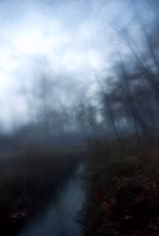 Las fotografías, realizadas en color con técnica digital, recorren distintos paisajes otoñales: un poste de teléfono en la niebla, un bosque envuelto en misterio, un río que discurre entre hojas multicolores o una carretera desdibujada.