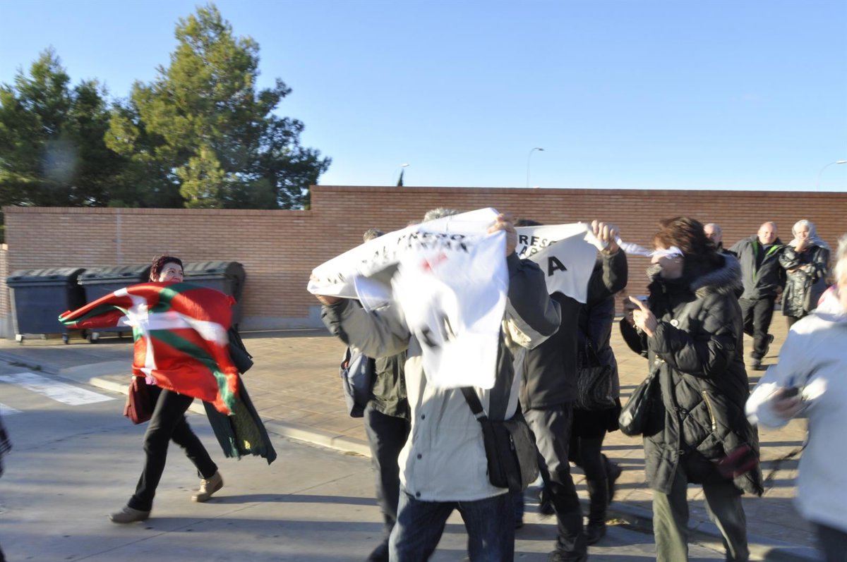 Los familiares han ocultado a Goldaraz, ataviado con una sudadera blanca y roja, tras una ikurriña, una bandera navarra y dos telas con el lema 'Euskal preso eta iheslariak etxera'. Le han introducido rápidamente en un vehículo y han abandonado inmediatamente el aparcamiento de la cárcel. Momentos antes de que Goldaraz saliera del recinto han entrado todos en el control de accesos para recibirle.