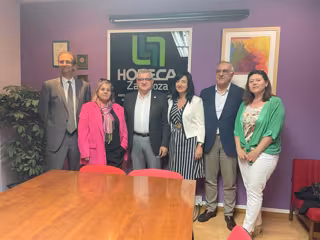 Sánchez-Garnica ha mantenido este jueves una reunión con los directivos de HORECA, el presidente, Fernando Martín, y el secretario general, Daniel López, acompañado por la directora general de Turismo y número 3 de la candidatura municipal de Zaragoza, Gloria