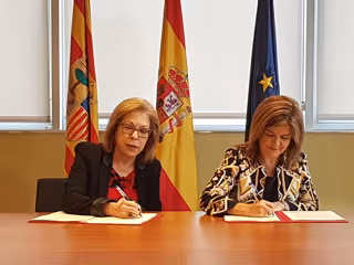 La consejera de Sanidad del Gobierno de Aragón, Pilar Ventura, y la directora gerente del Hospital San Juan de Dios, Carmen Vicente, han suscrito este jueves un nuevo convenio de vinculación para la integración del Hospital San Juan de Dios de Zaragoza en la red pública sanitaria del Servicio Aragonés de Salud, por un importe de 59,6 millones de euros y una duración de cuatro años.