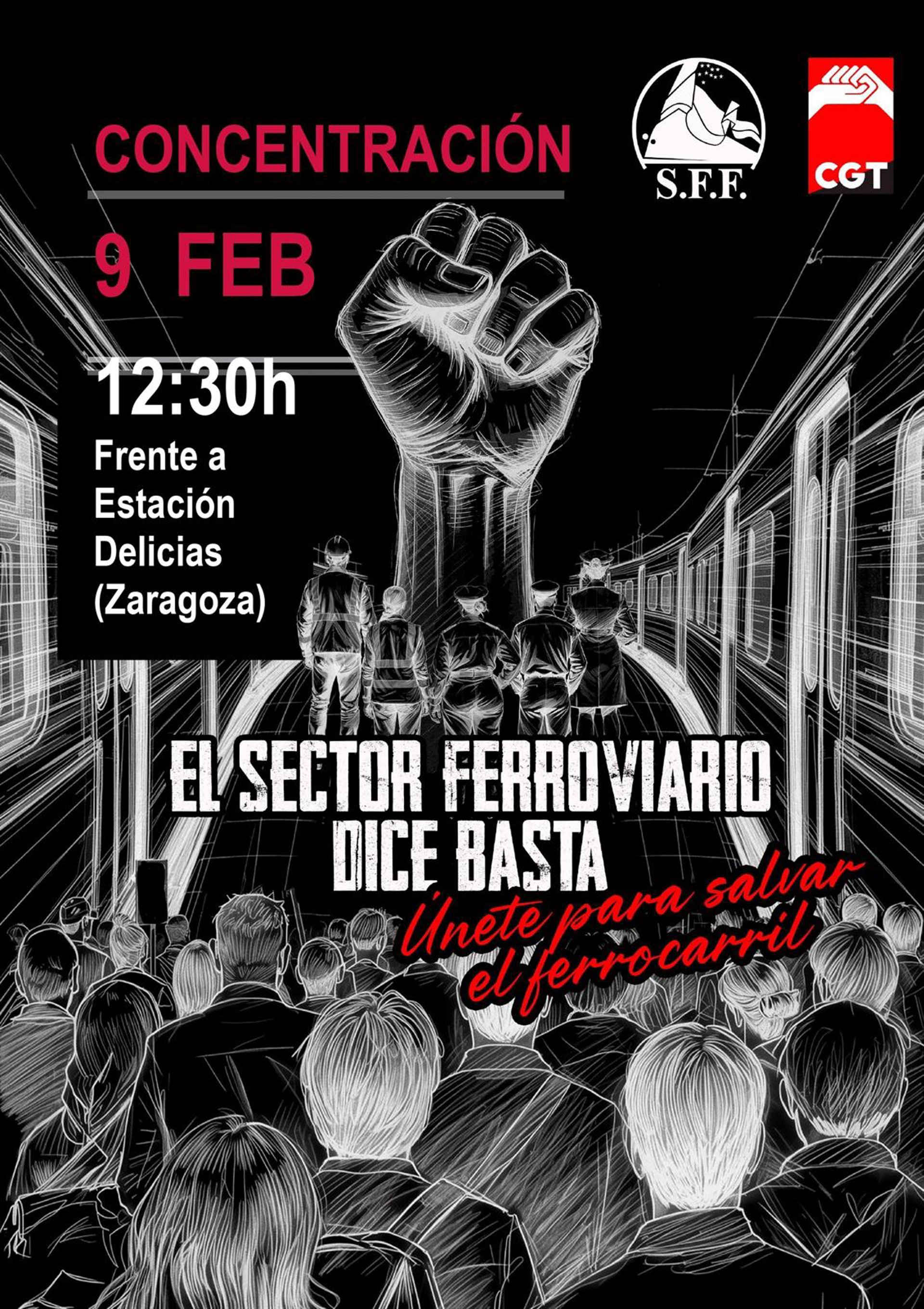 Los convocantes tienen previsto concentrarse este lunes 9 de febrero a las 12.30 horas frente a la estación Delicias bajo el lema 'El sector ferroviario dice basta: únete para salvar el ferrocarril'.