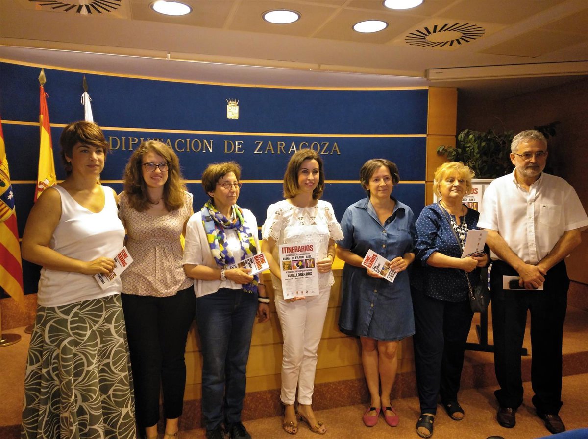 La vicepresidenta segunda de la Diputación Provincial de Zaragoza (DPZ) y alcaldesa de Ejea, Teresa Ladrero; la presidenta de la fundación El Frago, Ana Aragüés; la presidenta de la Asociación Banzo Azcón de Luna, Rosalía Redondo; Belén Dieste, en representación del Ayuntamiento de Biel; y la artista Lorén Ros, han presentado en rueda de prensa, en la sede de la DPZ, esta iniciativa cultural.