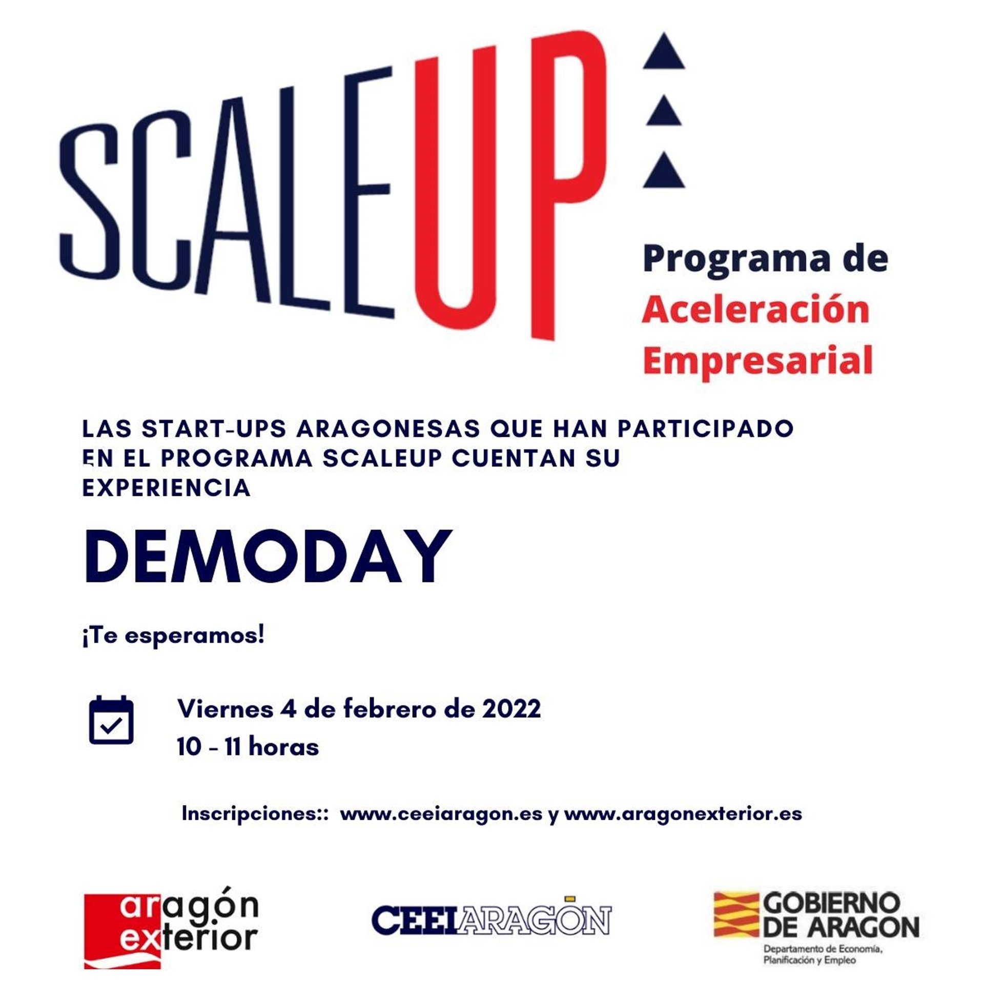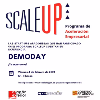 El Centro Europeo de Empresas e Innovación de Aragón (CEEIARAGON) y Aragón Exterior (AREX) preparan una nueva convocatoria del programa de aceleración empresarial "Scale Up" tras los buenos resultados de su primera edición. Los seis proyectos empresariales que han participado en ella compartirán su experiencia y explicarán qué les ha aportado este programa en un evento online gratuito que tendrá lugar este viernes, 4 de febrero, a las 10.00 horas, y para el que continúa abierta la inscripción.