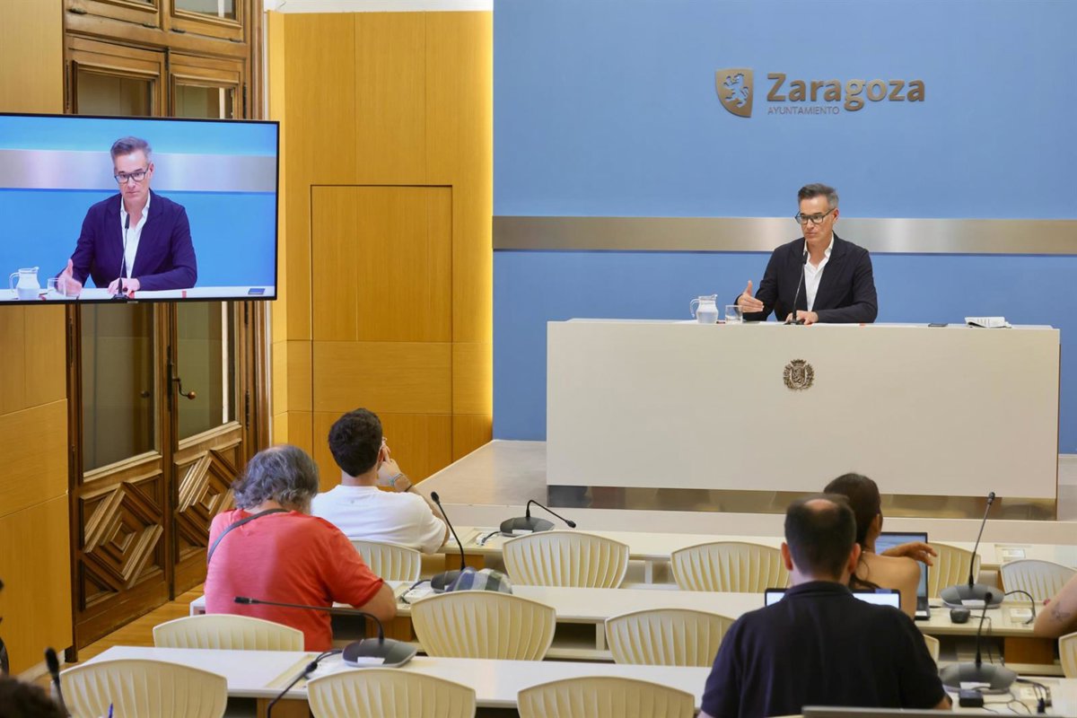 El consejero municipal de Urbanismo del Ayuntamiento de Zaragoza, Víctor Serrano, en a rueda de prensa de este jueves. - DANIEL MARCOS