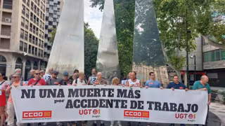 Los sindicatos CCOO y UGT se han concentrado de nuevo este miércoles en repulsa por los últimos accidentes mortales en el trabajo y han calificado como una "extraordinaria noticia" que el Gobierno de Aragón vaya a impulsar en septiembre un plan de choque que pondrá el foco en las subcontratas.