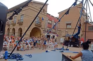 Este sábado, el SoNna Huesca se desplazaba unos kilómetros al sur, siguiendo el río Cinca, para recalar en la plaza Mayor de Alcolea de Cinca. En esta ocasión, el viento puso en peligro la puesta en escena de Nüshu, el último montaje de Capycua, la compañía de circo teatro catalano aragonesa, compuesta casi exclusivamente por mujeres.