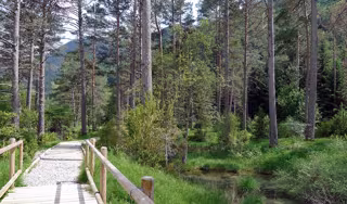 El escenario donde actuará Obiols es uno de los tradicionales del SoNna Huesca. El sendero circular de El Cornato, de 700 metros de longitud y desnivel inapreciable cruza el río Cinca y un abetal centenario donde se ubica la escultura Arte y Naturaleza de Siah Armajani Mesa de pic-nic.