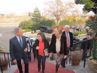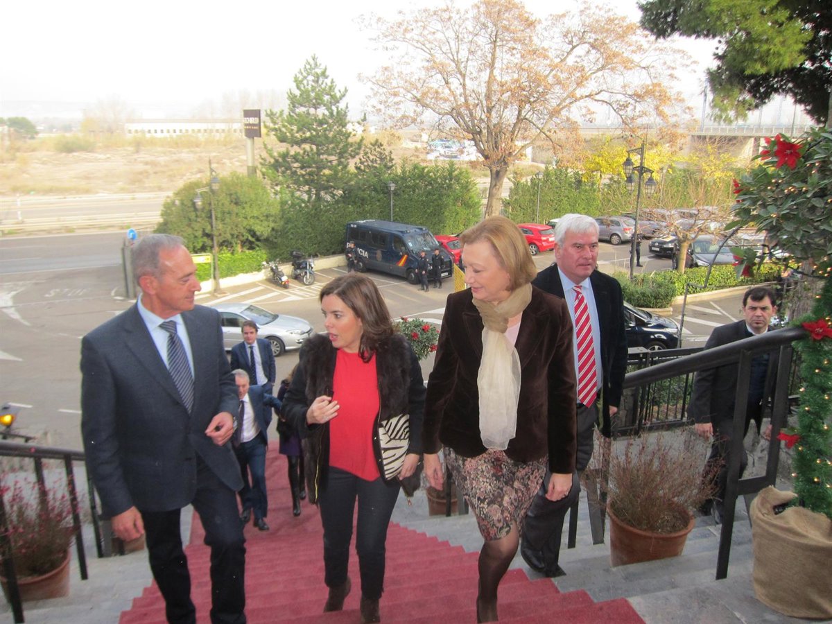 Sáenz de Santamaría ha compartido un almuerzo con empresarios aragoneses en el restaurante 'El Cachirulo' de Zaragoza. Ha estado acompaña por la presidenta del PP-Aragón, Luisa Fernanda Rudi, quien también es senadora autonómica, y por el vicepresidente del PAR, Joaquín Serrano, porque el presidente de este partido, Arturo Aliaga, está indispuesto al padecer un episodio de lumbago.