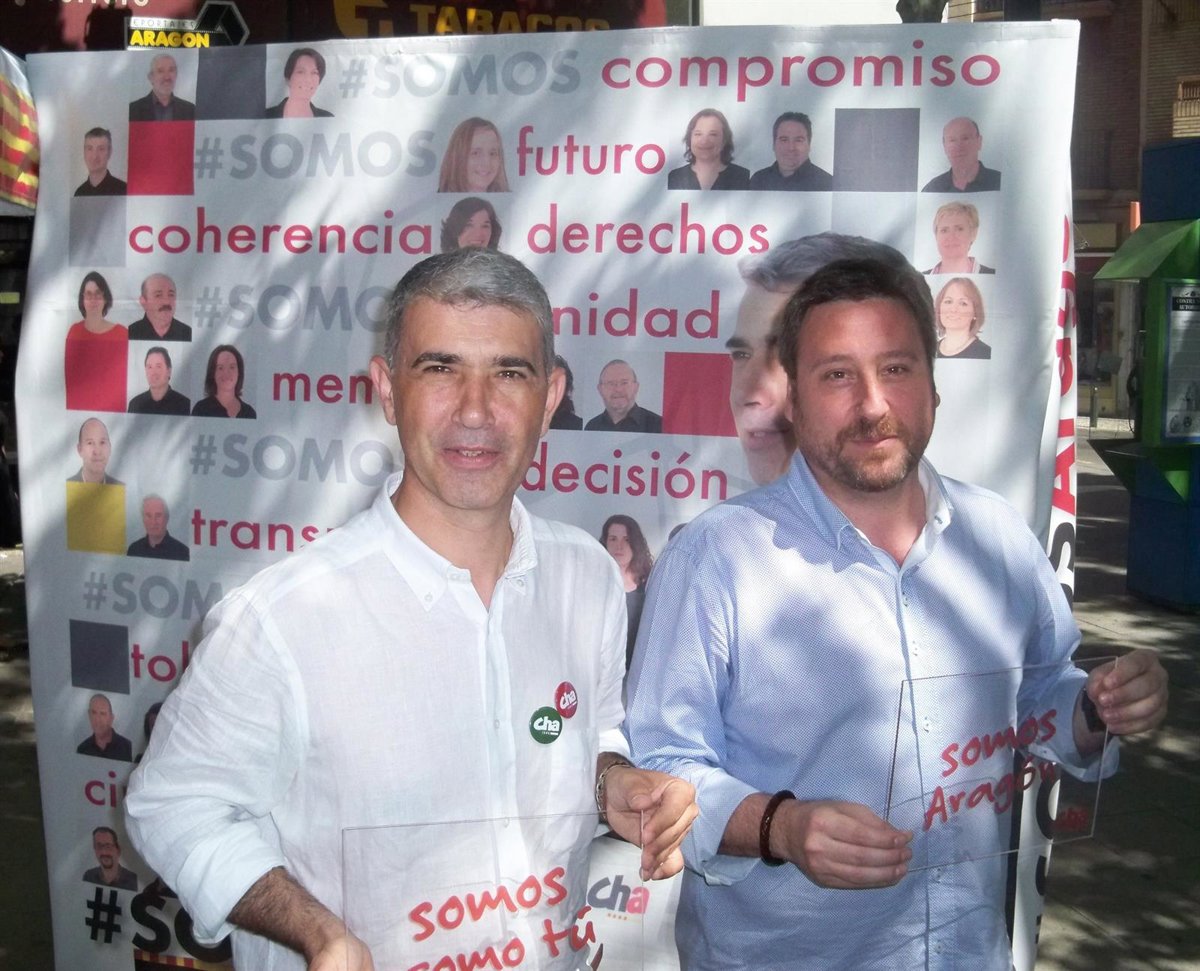 El también presidente de Chunta Aragonesista ha estado presente este martes en la Plaza de las Canteras de Zaragoza, junto al candidato a la Alcaldía de la capital aragonesa, Juan Martín.