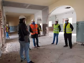 Los primeros trabajos que se han llevado a cabo han servido para realizar la limpieza de la vegetación, escombros y basuras presentes en el interior y el exterior del inmueble. Se ha actuado también en la eliminación de tabiques y en la recuperación de pavimentos originales.