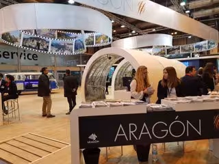 El estand simula ofrece un recorrido a través de los principales iconos del patrimonio y la naturaleza en Aragón. La naturaleza salvaje y el turismo familiar son las apuestas que completan la oferta.