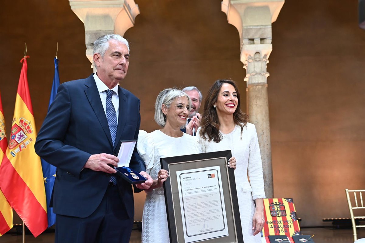 La presidenta de las Cortes de Aragón, María Navarro, ha entregado la Medalla del Parlamento autonómico a la Corporación Aragonesa de Radio y Televisión (CARTV), galardón que han recogido el presidente del Consejo de Administración, Antonio Suárez, y la directora general de la corporación, Raquel Fuertes. Suárez ha manifestado que en estos 20 años de existencia, "Aragón Radio y Aragón TV "han acompañado a los aragoneses en los momentos más relevantes de su historia".