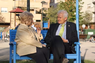 Eloy Suárez se ha entrevistado con algunos vecinos del Rabal en su ya conocido 'banco azul' y ha criticado al actual alcalde y candidato del PSOE a la reelección, Juan Alberto Belloch, del que ha dicho que ha dispuesto de las dos legislaturas que ha gobernado la ciudad, un total de ocho años, para reformar la Avenida de Cataluña.