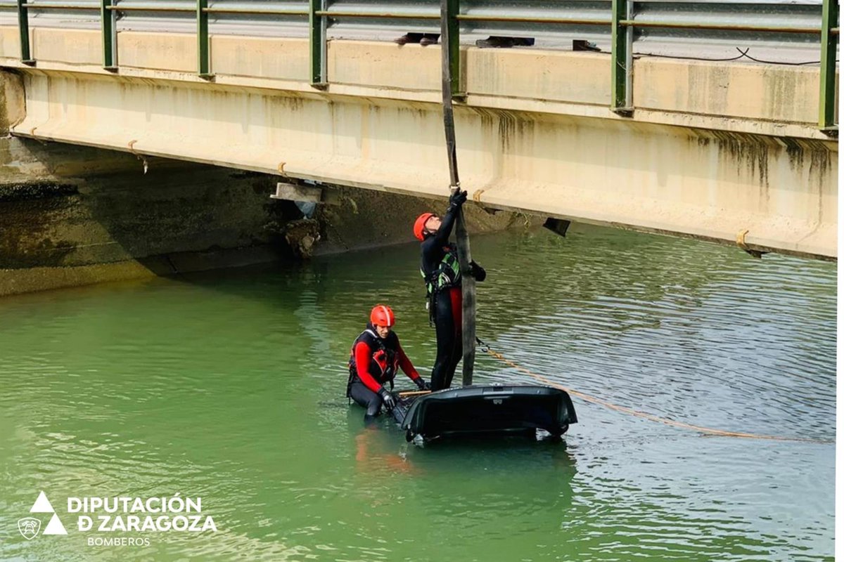 Los bomberos del Parque de Tauste de la Diputación Provincial de Zaragoza (DPZ) han colaborado este miércoles en la extracción de un turismo que ha caído la pasada madrugada al Canal Imperial de Aragón a su paso por el casco urbano de Gallur (Zaragoza).