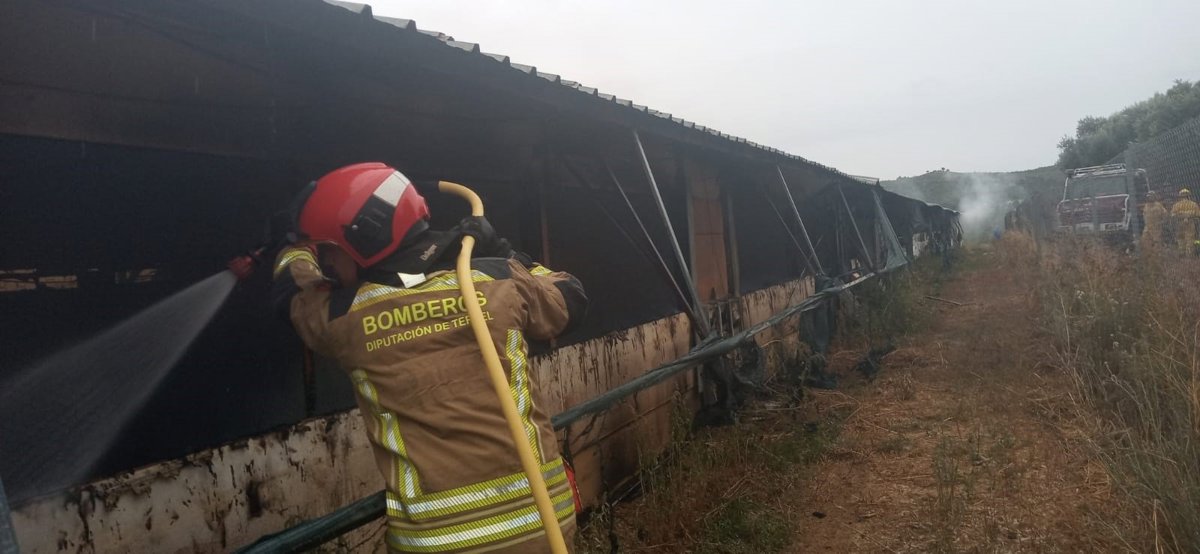 Un incendio declarado en una granja de pollos, ubicada en el término municipal de Valdeltormo, en la Comarca del Matarraña, ha calcinado las instalaciones y a los animales que había en su interior, si bien el fuego no se ha extendido más allá de la misma.