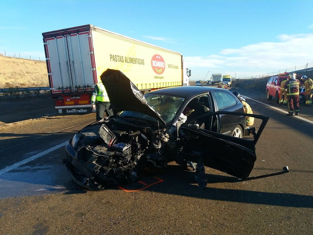 El siniestro se ha producido en torno a las 9.00 horas, cuando un turismo que circulaba hacia Zaragoza se ha salido de la vía por su izquierda, ha atravesado la mediana y ha colisionado contra las ruedas traseras de un tráiler que iba en sentido Huesca y que ha intentado evitar el choque.