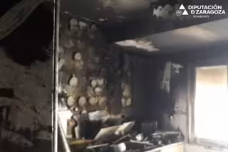 Los bomberos de la Diputación de Zaragoza han sofocado el fuego originado en la cocina de uno de los pisos, que ha quedado destruida por las llamas.