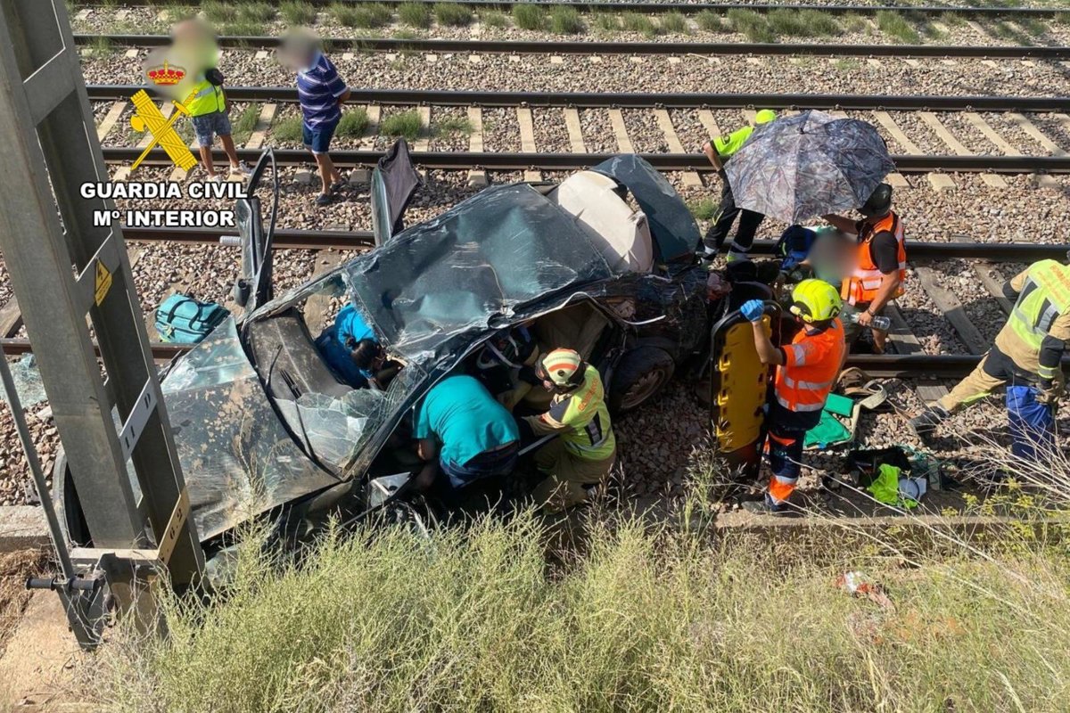 Vehículo caído a la vía del tren en Ricla - GUARDIA CIVIL