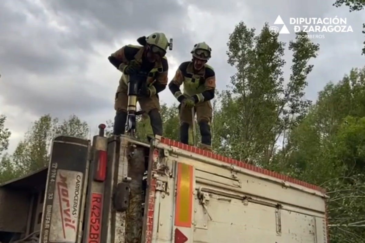 El siniestro ha tenido lugar este lunes, 12 de junio, al salirse de la vía el camión y volcar en la cuneta, ha informado la DPZ.