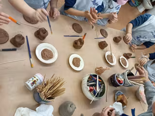 Después de esta actividad los participantes pasan al taller del barro, la parte práctica del programa en la que niños y jóvenes descubren las dos técnicas más importantes del trabajo del alfarero, el torno y el modelado a mano.